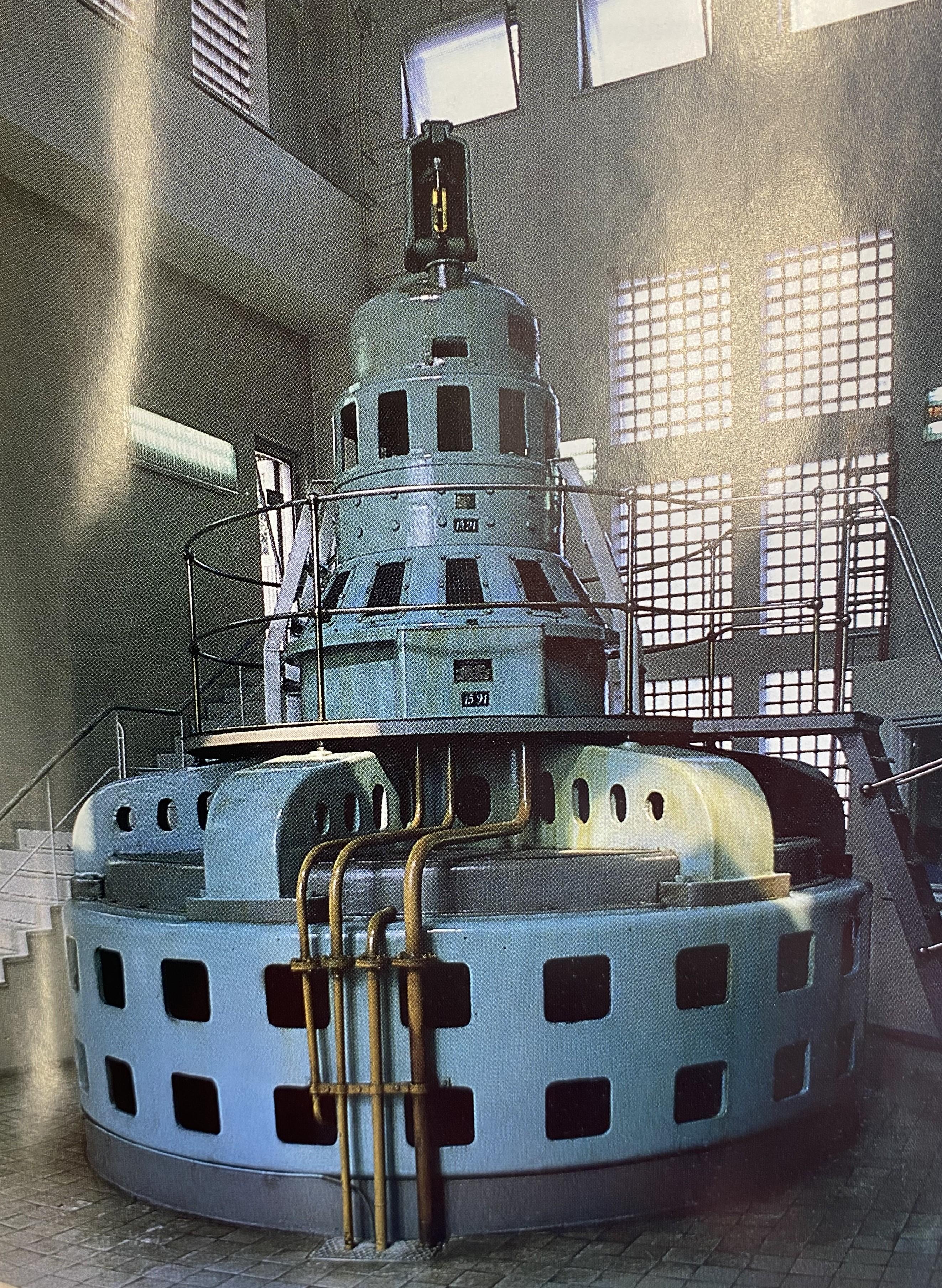 Kouvolan Seudun Sähkölaitos osti Verlan vesivoimalaitoksen Kymmene Oy:ltä vuonna 1989. Verlan voimalaitos liitettiin sähkölaitoksen verkkoon 1.8. Kuvassa näkyy Verlan voimalaitoksen päägeneraattori.