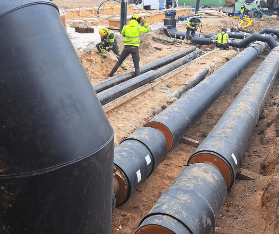 Lokakuun alkupuolella työmaalla on toteutettu kaukolämmön runkolinjan muutostöitä: vanha saa väistyä ja uutta tuodaan tilalle.