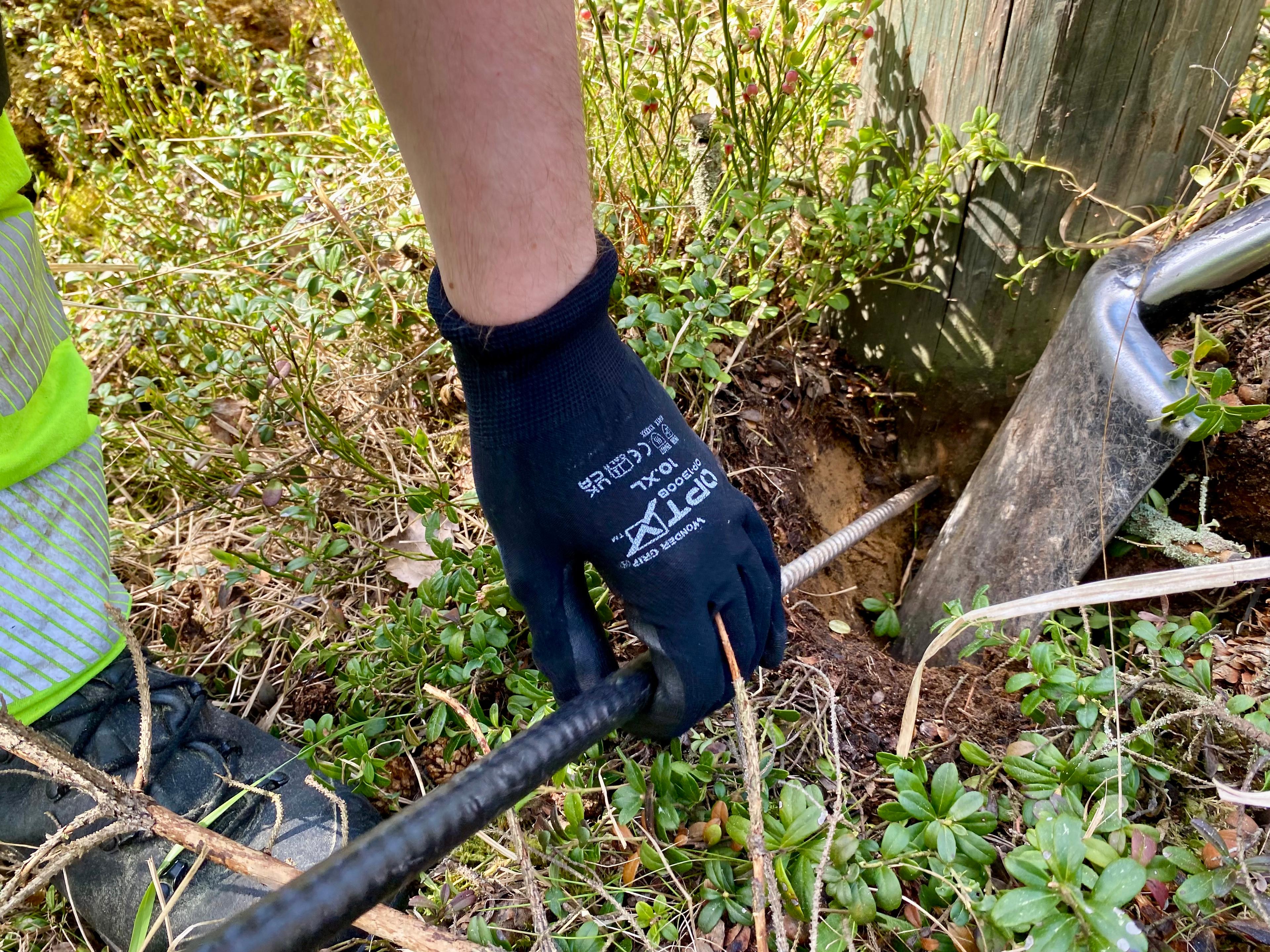 "Lopuksi koputtelen vielä pylvästä vasaralla ja kuulostelen, onko pylväs ehjä vai ontto. Tarvittaessa pylvään kuntotaso varmistetaan poraamalla pylvääseen reikä lahoamistason selvittämiseksi", Juuso Rämä kertoo.