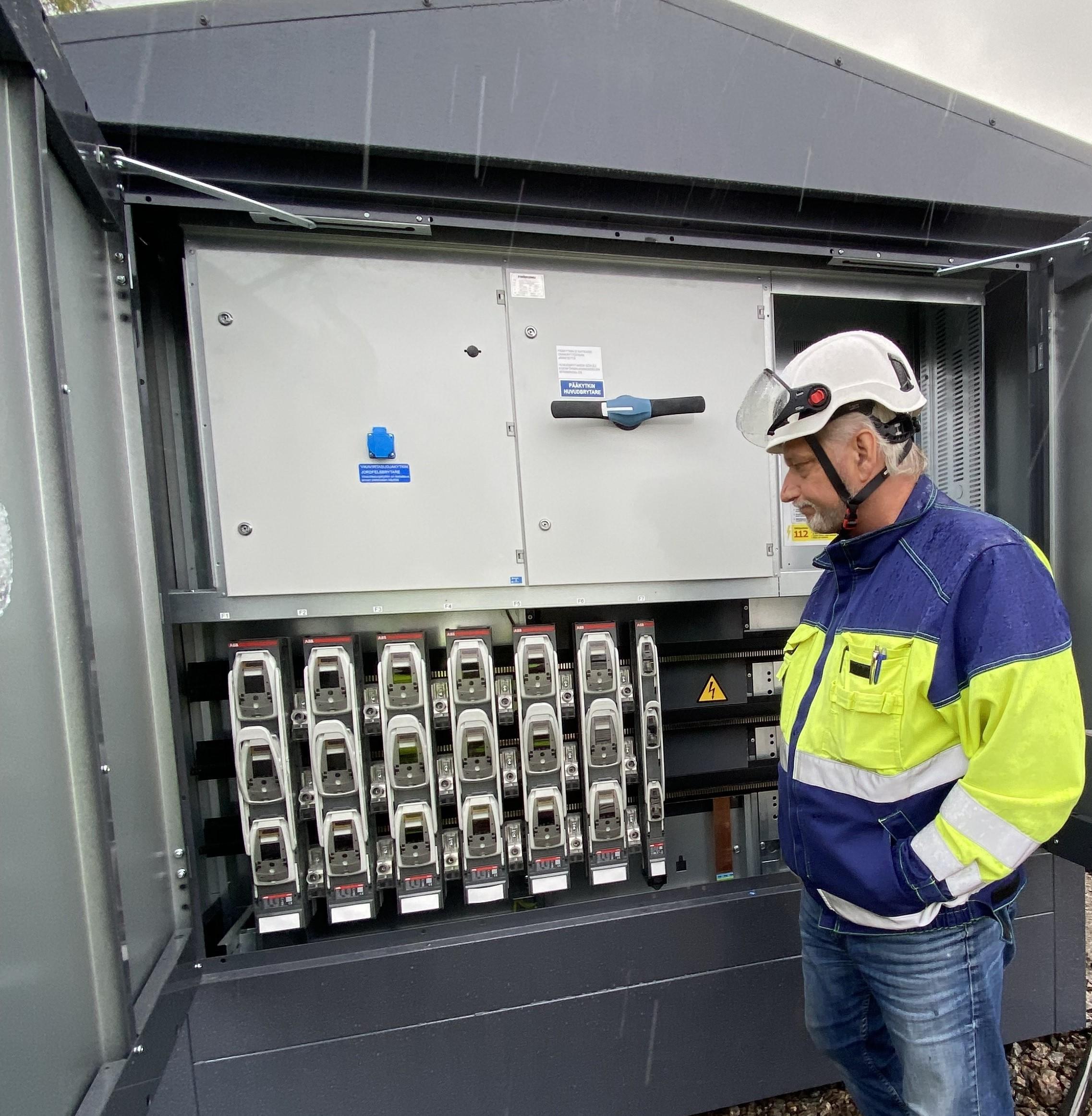 "Sähköä siirretään keskijännitteenä (20 kilovolttia) muuntajalta muuntajalle. Muuntaja muuntaa keskijännitteen pienjännitteeksi (400 volttia), joka siirretään sitten alueella olevien jakokaappien kautta kiinteistöihin", Antti Vainonen kertoo.
