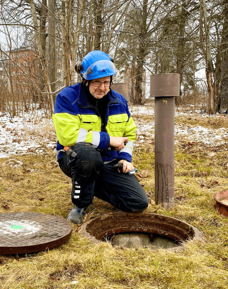 "Tietyt kaivot vaativat säännöllistä pumppausta, jotta putket saadaan pidettyä kuivana. Toki meillä on käytössä myös kaivonvalvontalaitteita, joiden kautta saamme tietoa vesirajan noususta", sanoo Vesa Horppu.