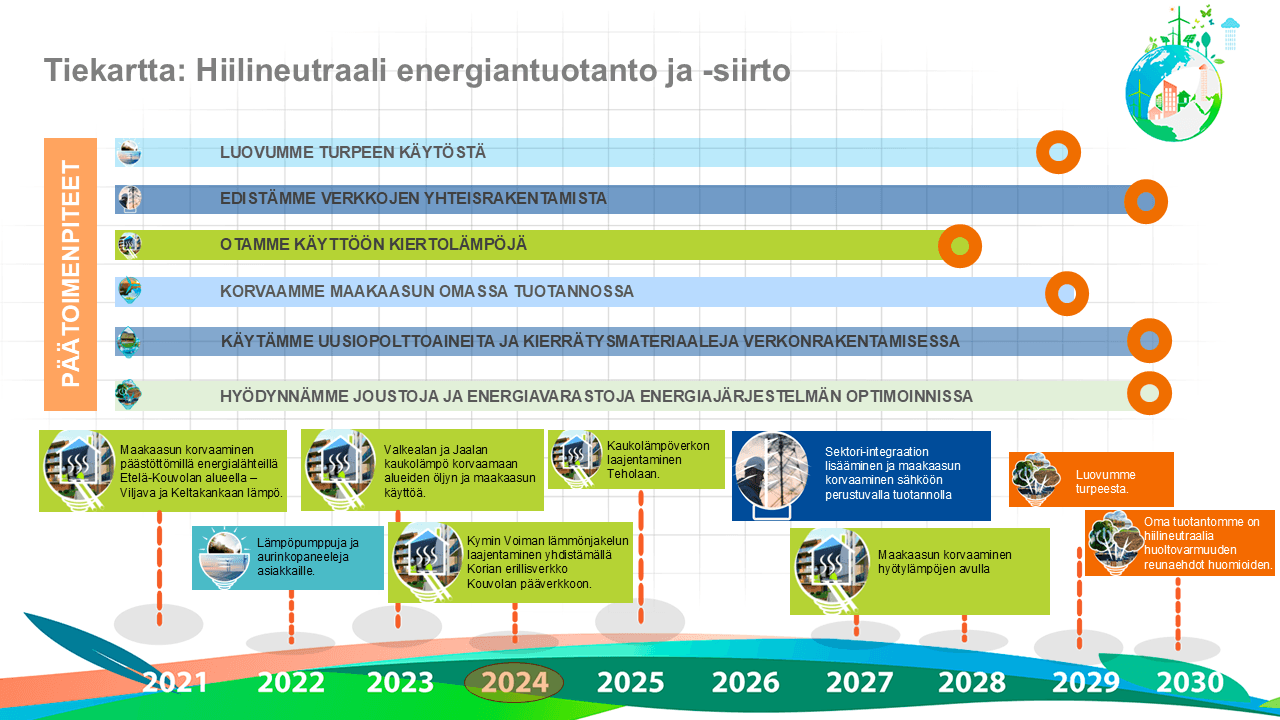 Keinoja hiilineutraalin energiajärjestelmän luomiseksi ovat mm. turpeen käytöstä luopuminen, maakaasun korvaaminen biokaasulla tai vaihtoehtoisilla tuotantomuodoilla, erilaisten hukkalämmönlähteiden hyödyntäminen kaukolämmön tuotannossa sekä energiajärjestelmän optimointi joustojen ja energiavarastojen avulla. Hukkalämmön talteenotto vähentää lämmöntuotannon tarvetta fossiilisilla polttoaineilla. Samalla se vähentää kannattavasti myös hiilidioksidipäästöjä.