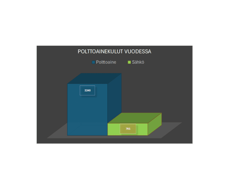 Oheisesta kuvasta löytyy laskelma ajettujen kilometrien kustannuksista, kun alla on sähköauto tai polttoaineella kulkeva menopeli. Laskelmassa on käytetty seuraavia tietoja: