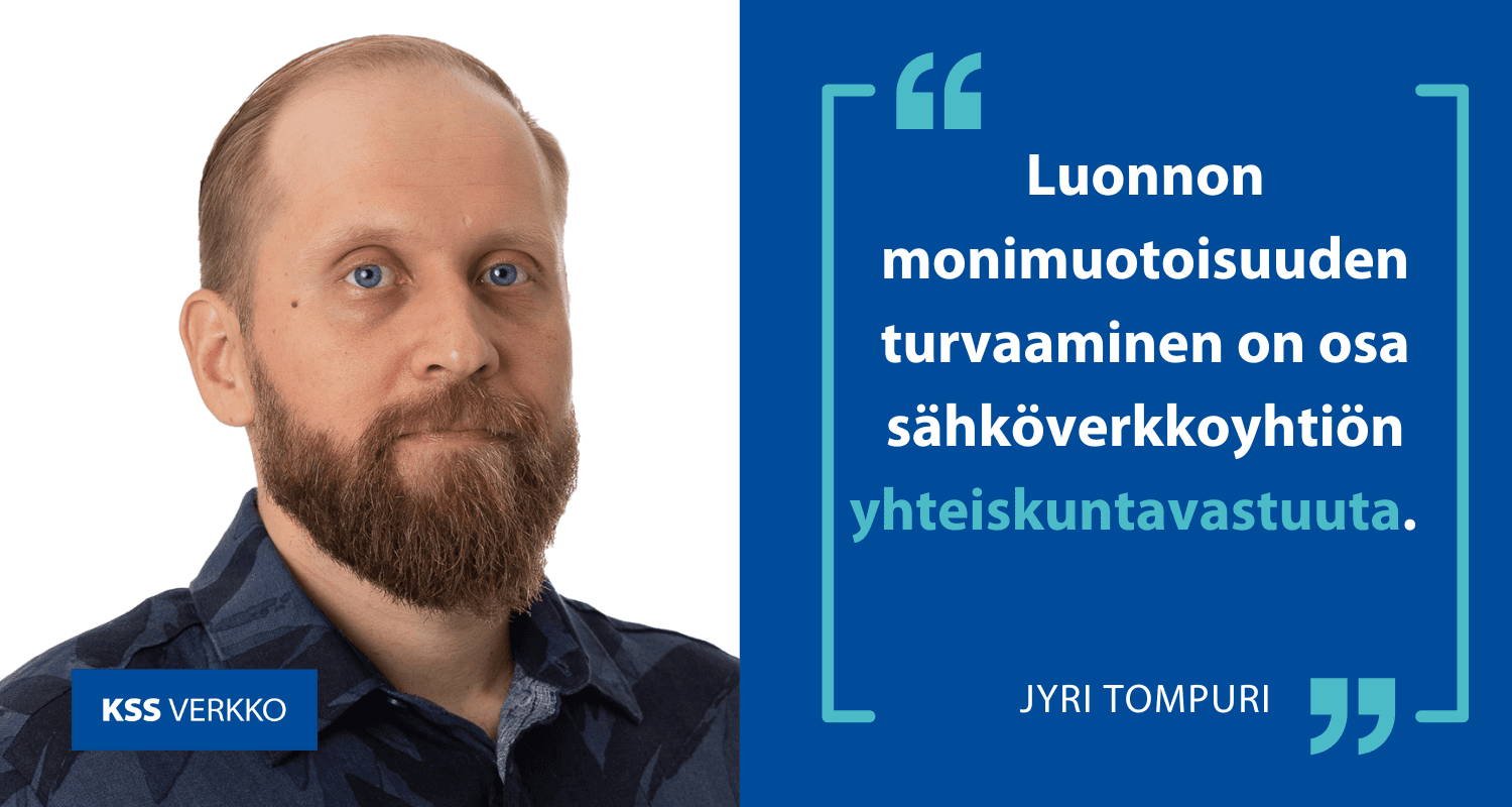 Viime vuonna laadimme KSS Energia -konsernissa kattavan biodiversiteettiaineiston, johon on koottu luonnon monimuotoisuuden kannalta keskeisiä paikkatietoaineistoja. Nämä tiedot tarjoavat meille tarkemman kuvan esimerkiksi suojelualueista, uhanalaisten lajien elinympäristöistä ja ekologisista yhteyksistä. Tämän ansiosta pystymme hankealueidemme suunnittelussa huomioimaan jo varhain ympäristön kannalta kriittiset kohdat ja näin vähentämään rakentamisen ja kunnossapidon aiheuttamia haittoja.
