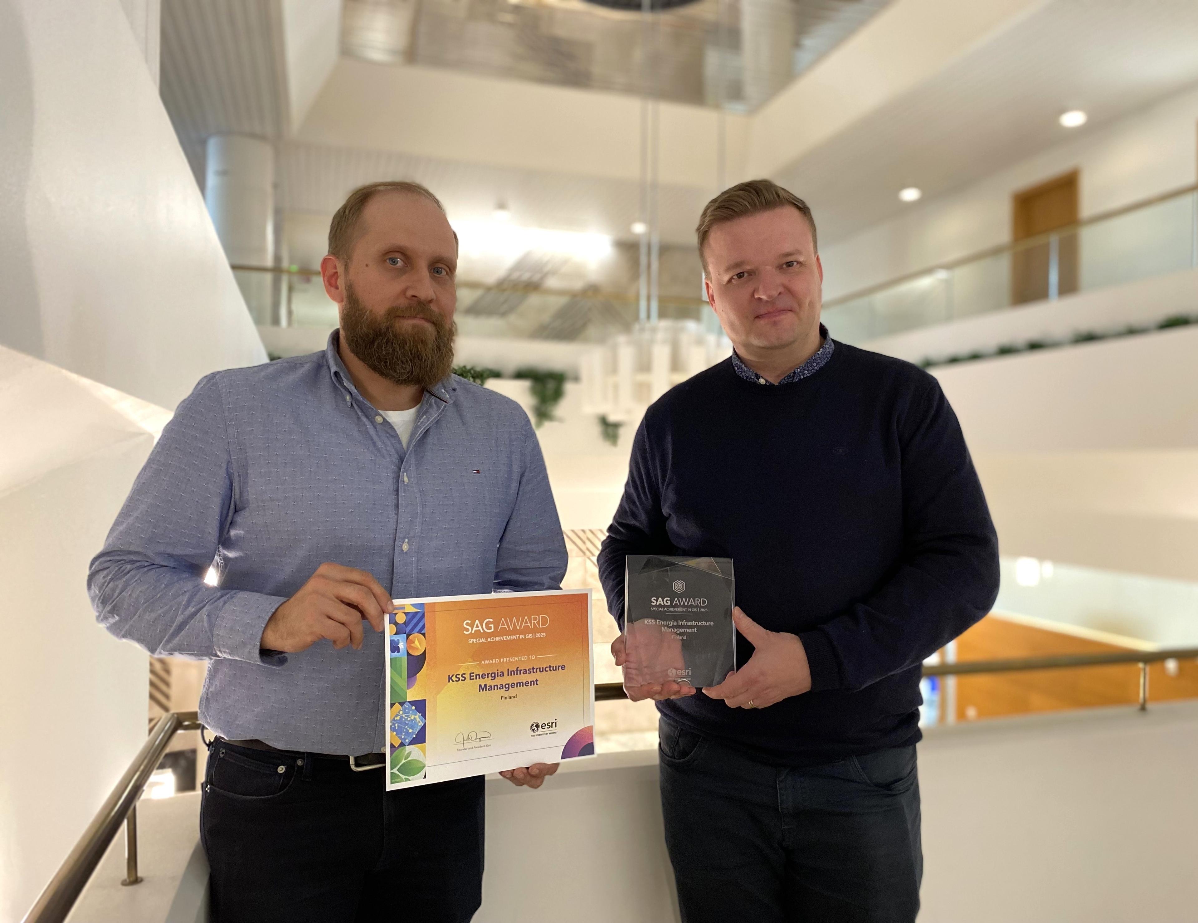 Tästä yhtenä osoituksena ESRI, maailman johtava paikkatietoratkaisujen toimittaja, on myöntänyt arvostetun Special Achievement in GIS (SAG) -palkinnon KSS Energialle tunnustuksena esimerkillisestä ja laaja-alaisesta ArcGIS-teknologian hyödyntämisestä energia-alalla.