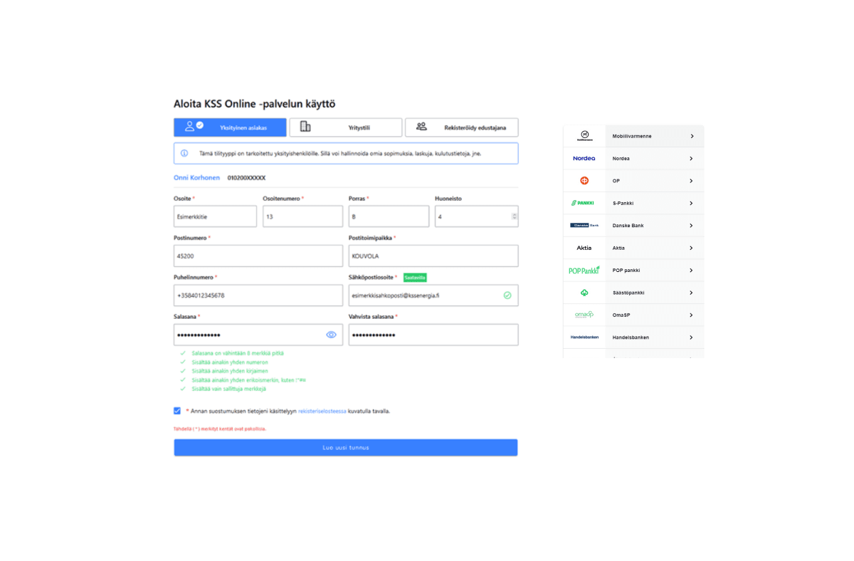 2.2 Järjestelmä ohjaa sinut läpi tunnistautumisprosessin, minkä jälkeen pääset täyttämään omat tietosi. Täytä lomakkeelta *-merkityt kentät.