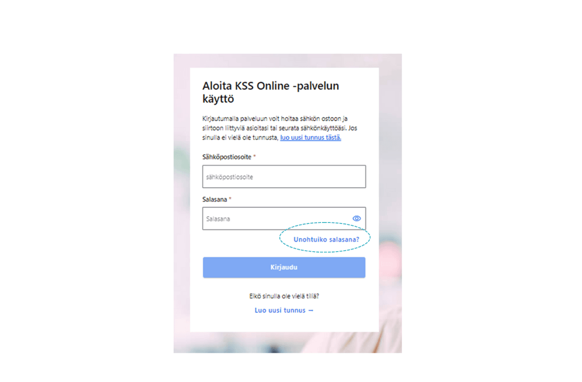 Pääset palauttamaan unohtuneen salasanan klikkaamalla KSS Onlinen aloitussivun Unohtuiko salasana? -painiketta.