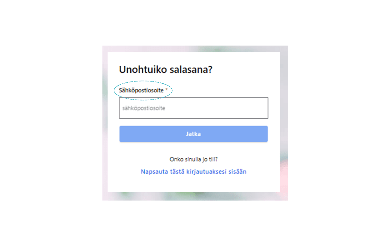 Syötä sähköpostiosoite, jonka olet antanut rekisteröitymisen yhteydessä.
