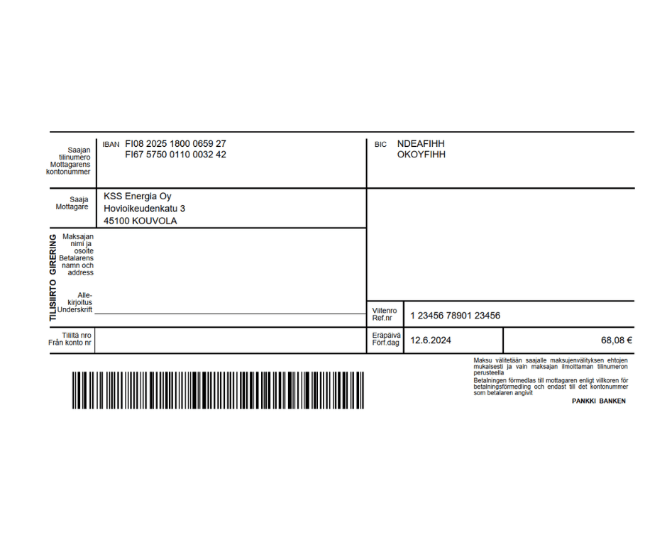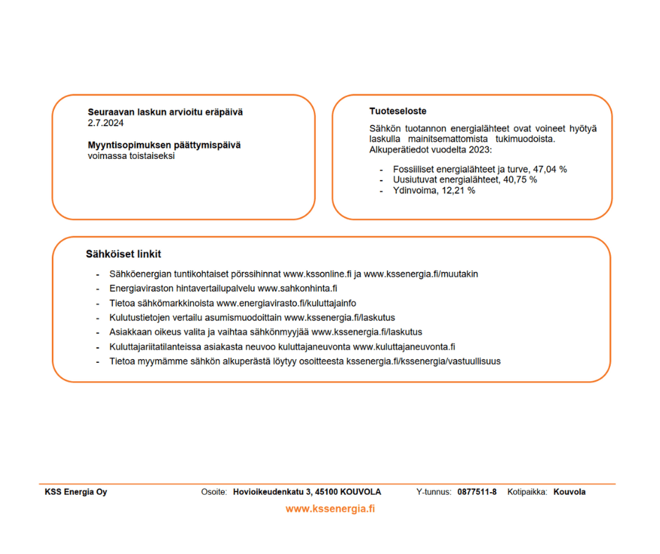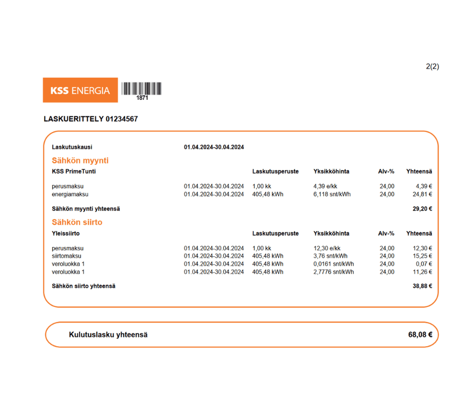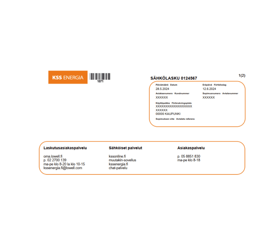 Tällä sivulla voit tutustua KSS Energian laskupohjaan ja siitä löytyviin tietoihin. Tutustu alla olevan linkin kautta esimerkkilaskuun.