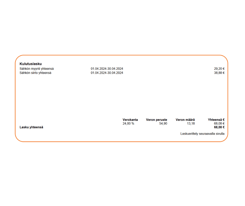 3. Kulutuslasku yhteensä koko laskutusjaksolta sekä veroerittely