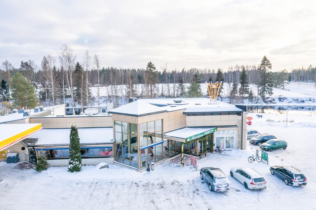 Hartolan Kuninkaan Portti (Keskustie 2, Hartola) sijaitsee Lahden ja Jyväskylän puolivälissä, nelostien varrella.