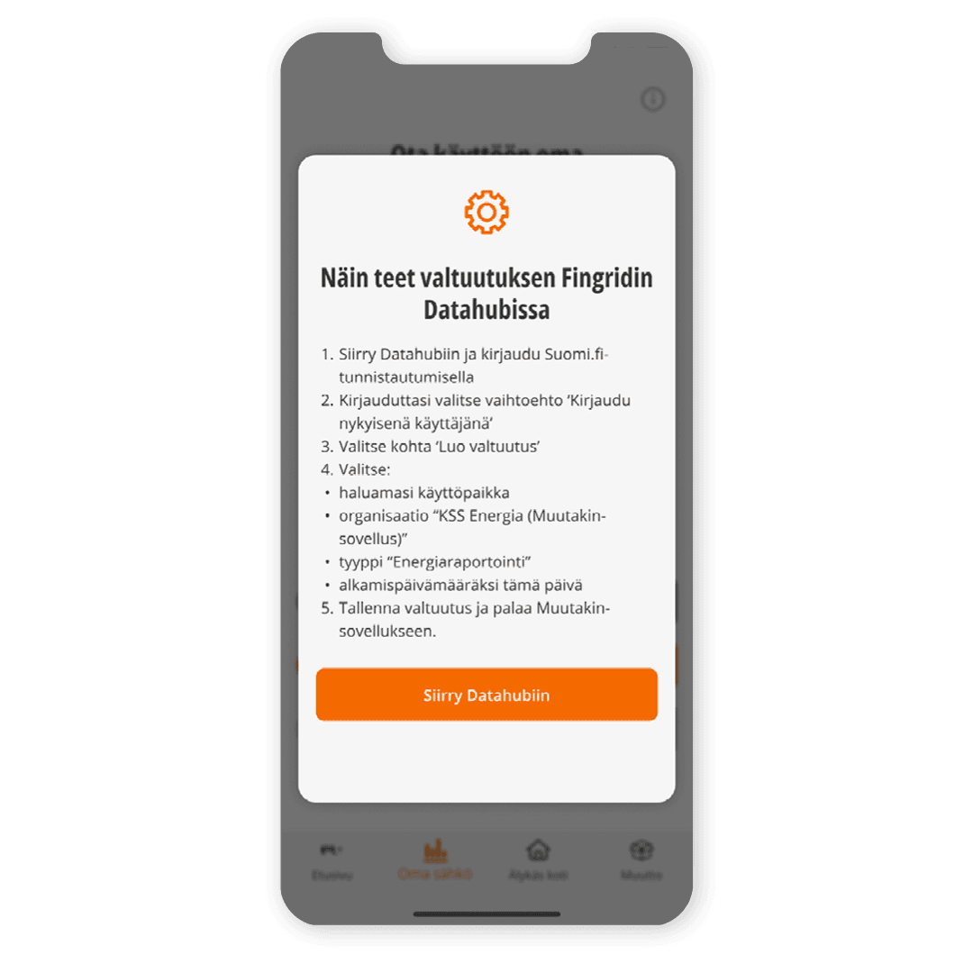 Tee valtuutus Fingridin Datahubiin ja saat ajantasaiset sähkönkulutustietosi Muutakin®-sovellukseen