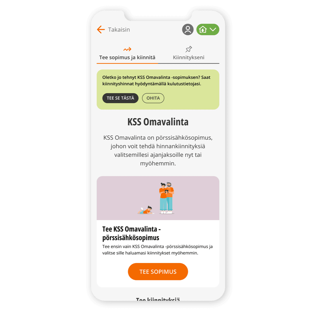 Näin pääset tekemään KSS Omavalinta -sähkösopimuksen ja kiinnityksiä