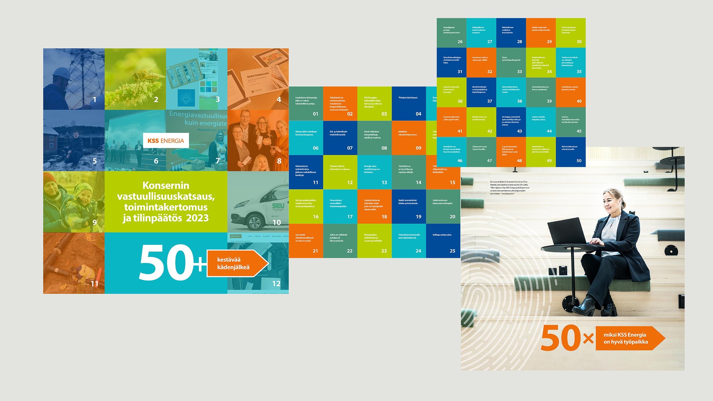 KSS Energia on tilikaudesta 2023 alkaen raportoinut vastuullisuustyöstään myös virallisen tilinpäätöksen oheen tuotettavassa konsernin yrityskatsauksessa. Tässä julkaisussa konserni on omasanaisesti kiteyttänyt henkilöstönsä sekä yhtiön johdon sanoin, miten vastuullisuustyö vuoden 2023 aikana todentui konsernissa.