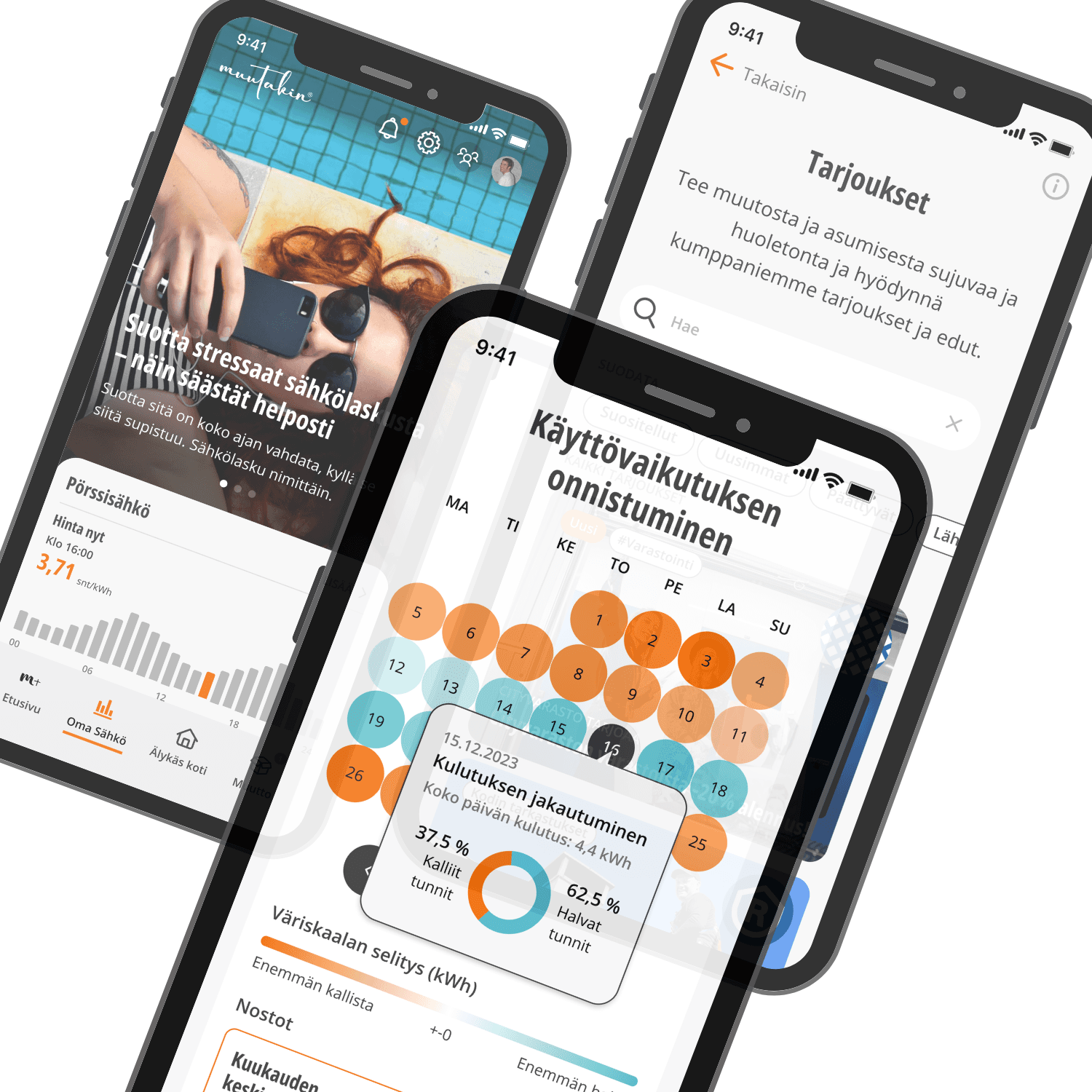 Se auttaa säästämään energiakustannuksissa tarjoamalla sähkönkulutustiedot ja havainnollistamalla käyttövaikutuksia ymmärrettävästi – näet, millainen sähkösopimus juuri sinulle sopisi. Lataa App Storesta tai Play Kaupasta!